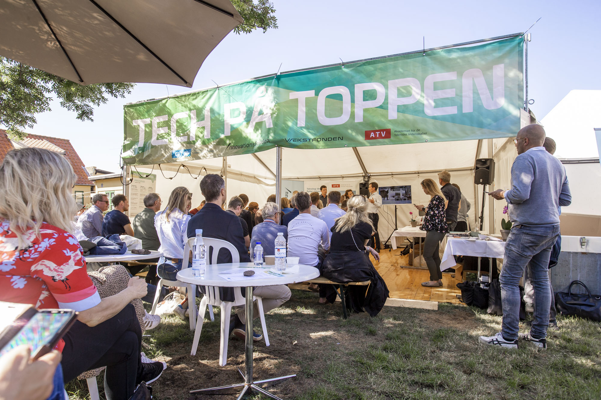 I år havde Innovationsfonden i samarbejde med Vækstfonden, ATV og GTS et fælles telt ”Tech på Toppen” fyldt med debatter om kunstig intelligens, kvinder i teknologi og IT, teknologiske løsninger på klimakrisen, fremtidens sundhed og meget mere.
