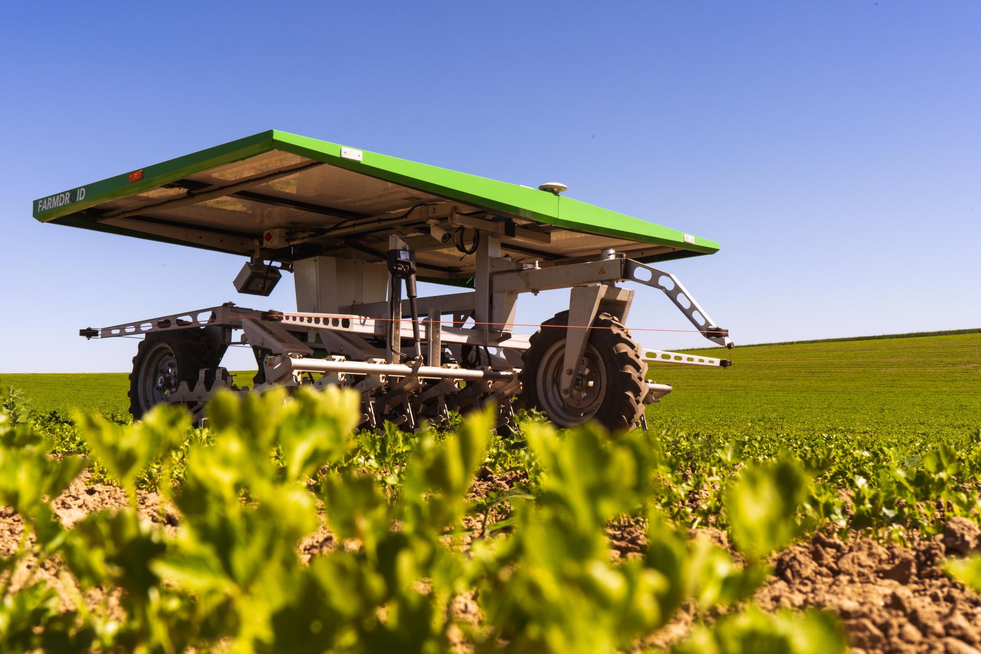 FarmDroids robot FD20 får strøm fra solceller og bruger avanceret navigationsteknologi til automatisk at så plantefrø. Dernæst holder den marker fri for ukrudt uden brug af manuel arbejdskraft.